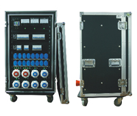 PX-40K 电源分配器箱体19箱体, 前后门蝶形锁扣, 4轮(2轮带刹制)最大输出43 KVA最大输入3×63 A Cekon插座A1-A8 及B1-B8输出8×16A Schuko 插座, 8×16A中式插座输出C1及C23×32A 5 芯Cekon插座输出D1-D632 A 三芯插座监测3 ×电压表,15×控制灯重量45Kg尺寸1,12M x 0,7M x 0,63M.